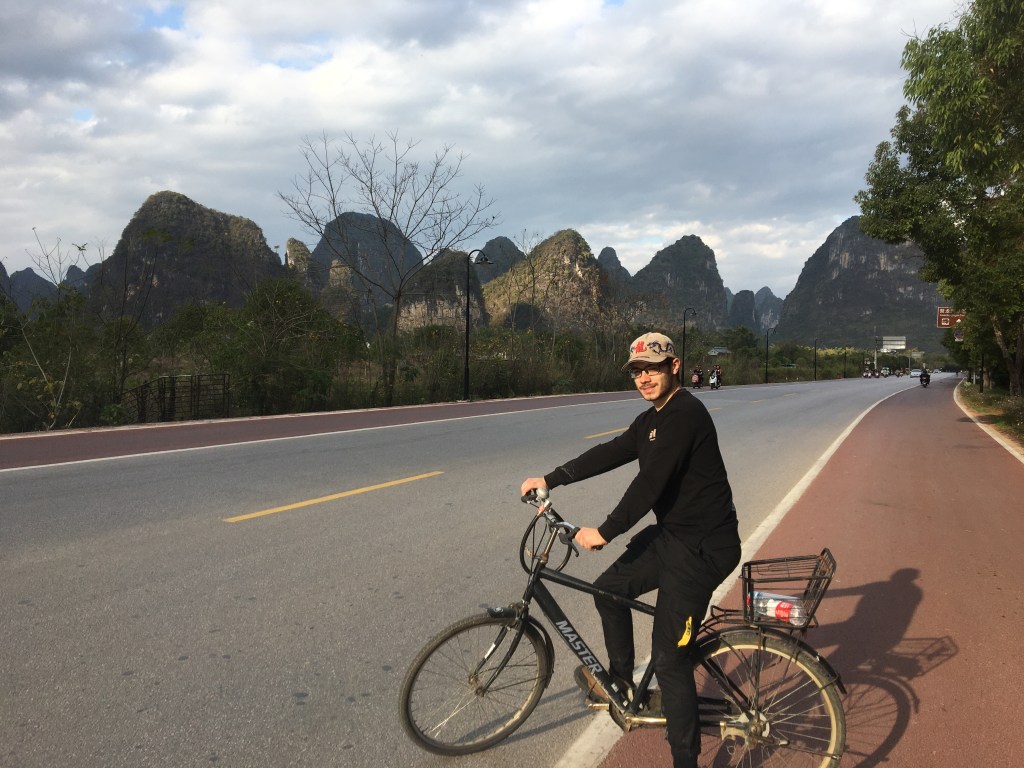 In the old days people just couldn’t take their phones out and do some quick snaps. So, to be able to preserve these beautiful landscapes for themselves and for others, they just drew it. This is my theory. To be honest, I have never seen such a breathtakingly beautiful scenery. All those mountains seem to be so mystical. Therefore, the first thing we did was hiking. We climbed a mountain right in the middle of the city of Yangshuo (It’s located in the Yangshuo park, Yangshuo gongyuan, 阳朔公园, and the starting point of the way up is a bit tricky to find) and enjoyed the view. In the middle of the climb we bumped into a stranger and he started a conversation telling us that he just broke up with his girlfriend. We didn’t know what to say. Patting his shoulder, I told him not to be too sad about it. I don’t think that I made it easier for him.