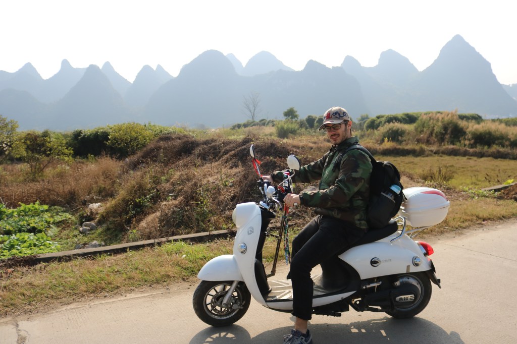 Everywhere in Yangshuo there are old cars, trucks and small lorries. They are loud, disgusting and driving very fast. So, be careful, especially, when you are driving a scooter, which brings me to my next point. You should consider renting a scooter or a bike. Usually, there are scooters and bikes available at almost every hostel or hotel. If not, don’t panic, every damn 50 meters you will find a place where you can rent them. And it’s so cheap. 10 or 20 RMB for a bike, and 50 RMB for a scooter. Why renting a scooter? Even if there is almost no elevation (YES! There is almost no elevation, although there are mountains everywhere. But the mountains are like needles rising up into the sky), you will be exhausted after all the hiking. The city of Yangshuo itself is not as interesting as you might think. All the interesting places are located around it. You need to be mobile and fast. So, the scooter is the best option you will have. Because all the scooters are electric, you need to rent gasoline ones to reach farer destinations. Even if you can’t ride a scooter, you can learn it in a few seconds. It’s almost as easy as riding a bike.